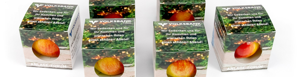 Bedruckte Apfelschachtel / Apfelbox / Werbeschachtel / Fruchtbox