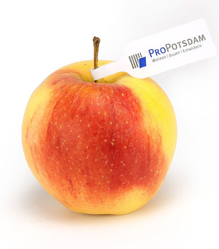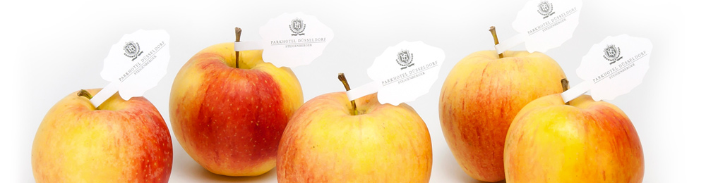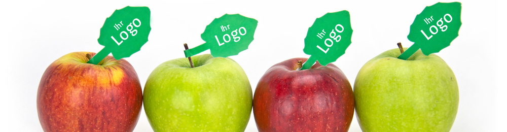 Mit Stielfahnen oder Logofahne veredelte Äpfel und Birnen bleiben in Erinnerung. Auch damit werben Sie mit Geschmack.