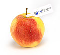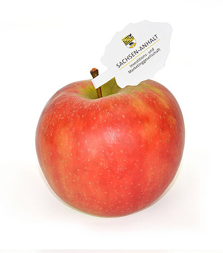 Messeapfel mit Logo-Fahne "Blatt". Werbung mit Biss!